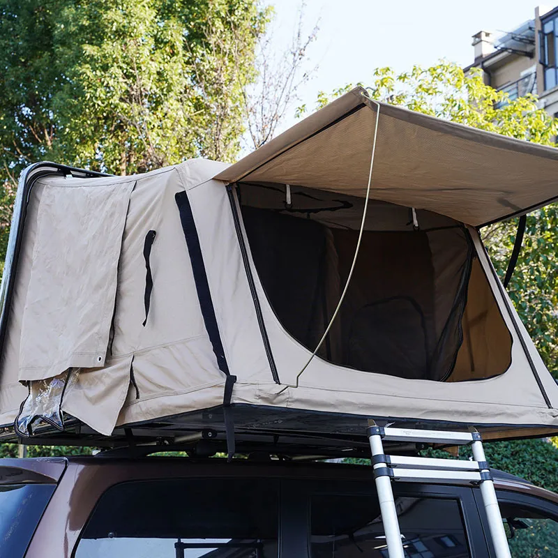 Автомобильная палатка, простая в хранении, малая толщина в сложенном состоянии, защита от солнца и воды, воздухопроницаемость, противомоскитная сетка, прочная опора, портативная модель, может храниться на крыше автомобиля, конструкция с внешним креплением.
