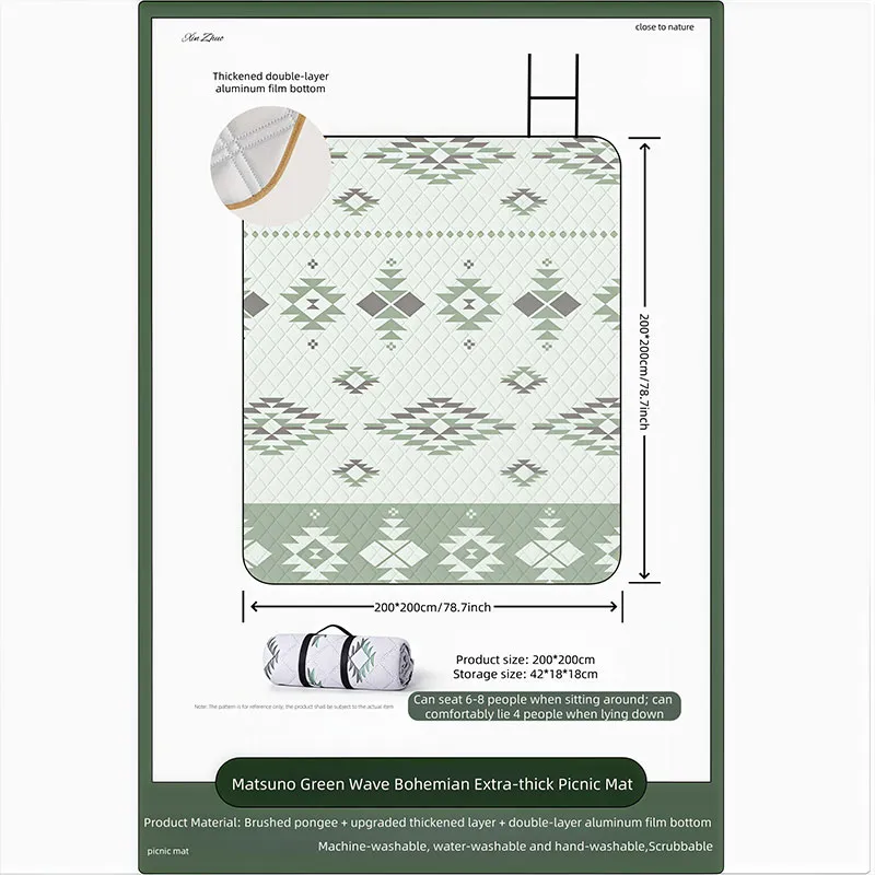 1 шт, утолщенный пикниковый коврик толщиной до 8 мм, подходит для различных сценариев: кемпинг, пикник, пляж. Специальная толстая набивка из хлопка, цельная упаковка для хранения, безопасно без формальдегида, тепло- и влагоизоляция, не прилипает песок и трава, мягкий, можно стирать в стиральной машине, серия минимализм и легкая роскошь. Водоотталкивающая ткань из весенней тафты, влаго- и грязеотталкивающая, износостойкая, проста в уходе. Двойное алюминиевое дно, влаго- и теплоизоляция. Ультразвуковое закрепление ваты, можно многократно стирать в стиральной машине.