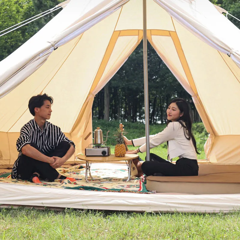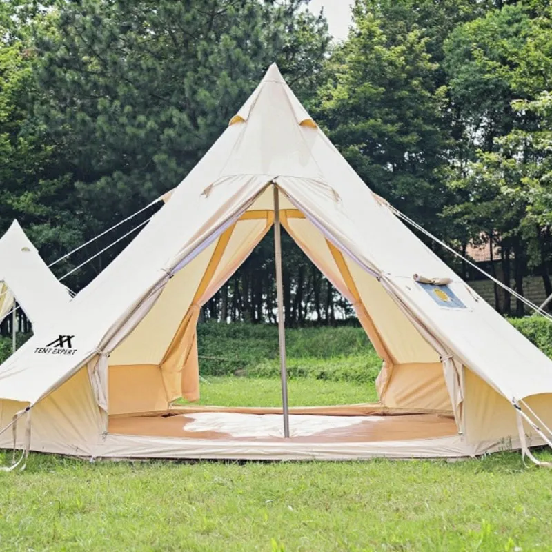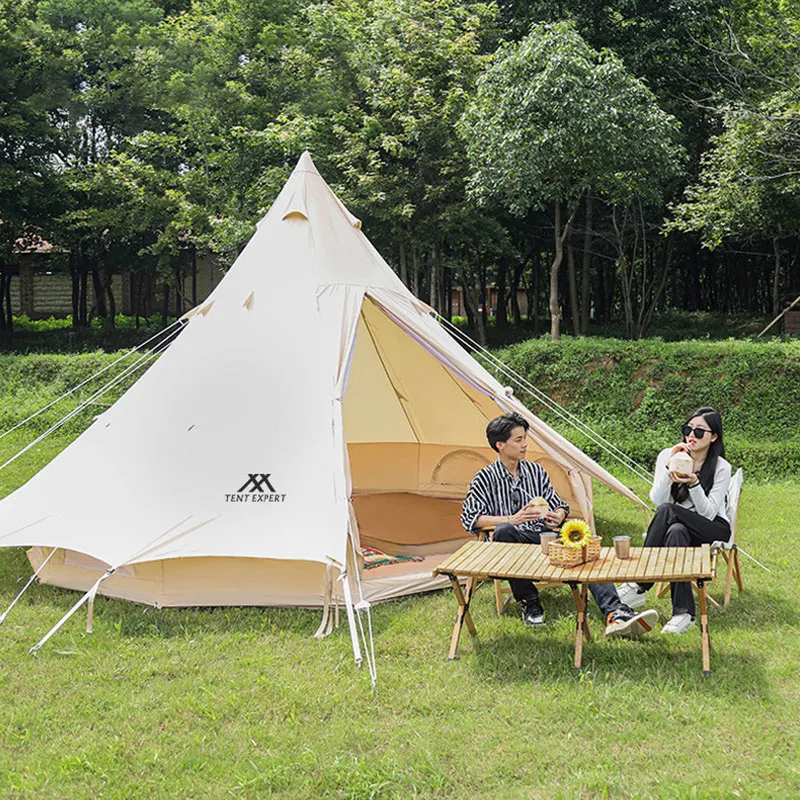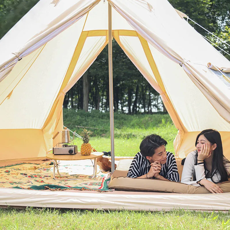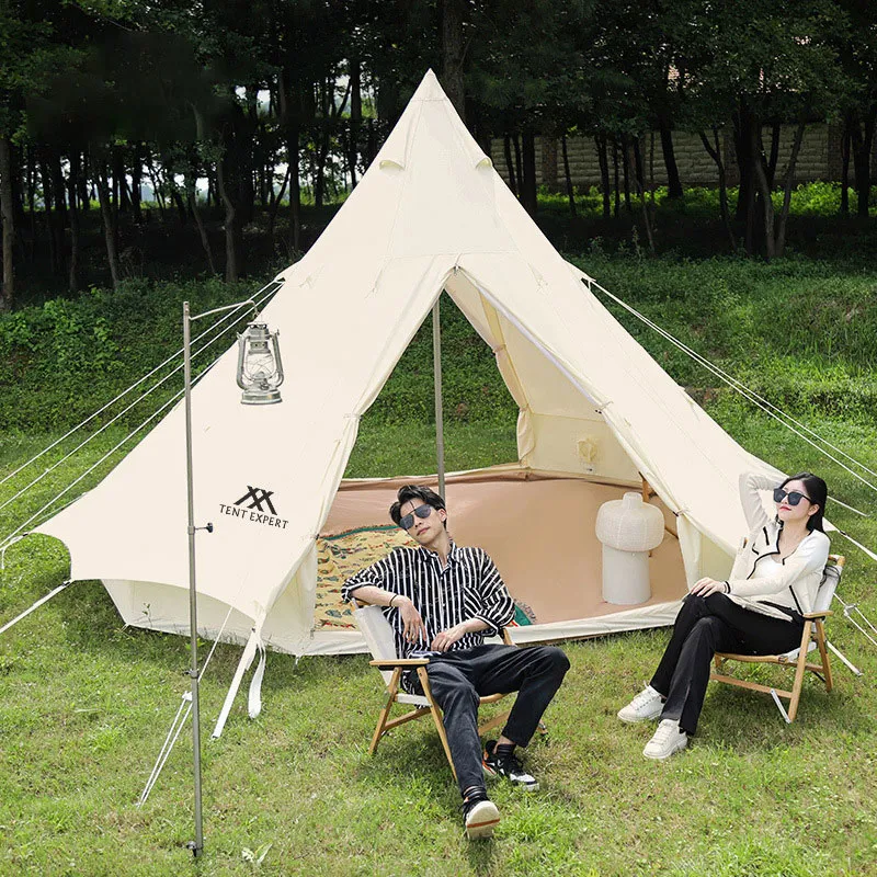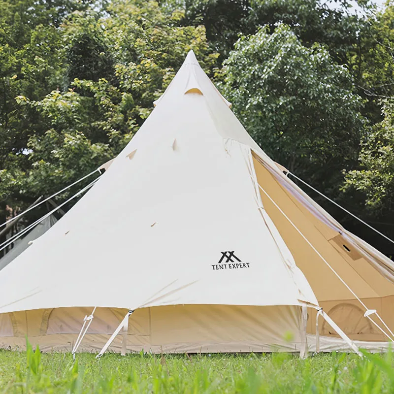Двухдверная пирамидальная палатка. Вентиляция и воздухопроницаемость. Изготовлена из утолщенной хлопковой ткани. Просторное внутреннее пространство. В комплекте: сумка для хранения, колья, оттяжки, стойки. Усиленное антиразрывное дно. Комбинация оксфордской ткани 900D и хлопковой ткани 285 г. Цельное водонепроницаемое дно с улучшенной гидроизоляцией.